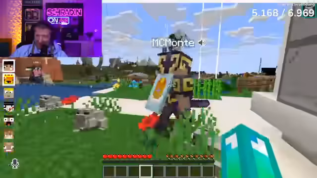 09:17:23Schradin bereitet sich auf einen bevorstehenden Kampf vor und fordert Neusi auf, ihm die benötigten Gegenstände zu besorgen. Er drückt seinen Ärger über die ständigen Angriffe aus und fühlt sich von einem Golem bedroht. Logo bietet an, Schradins Rüstung in einer Kiste zu deponieren, damit er sie später abholen kann. Schradin sammelt seine verlorenen Gegenstände ein, darunter seinen Beacon, und beklagt den Verlust seiner Spitzhacke. Er diskutiert mit Monte über die Zerstörung seiner Base und beschuldigt ihn, seinen Goldkeller gesprengt und Gold gestohlen zu haben. Monte bestreitet dies und die Diskussion eskaliert zu gegenseitigen Beschuldigungen und Drohungen. Schradin fühlt sich von allen Seiten angegriffen und ist bereit, sich zu wehren, während er versucht, seine Ausrüstung zu vervollständigen und sich auf den Kampf vorzubereiten. Er ist entschlossen, sich nicht länger zum Narren halten zu lassen und die Kontrolle über die Situation zurückzugewinnen.