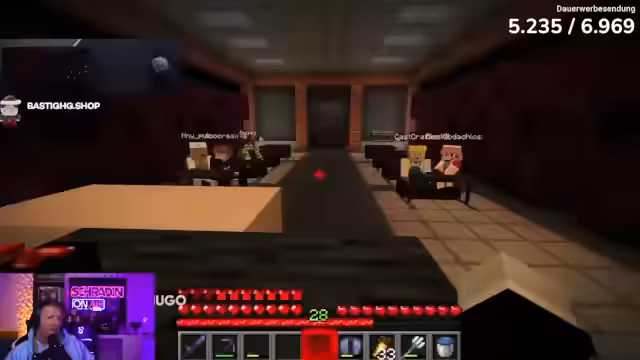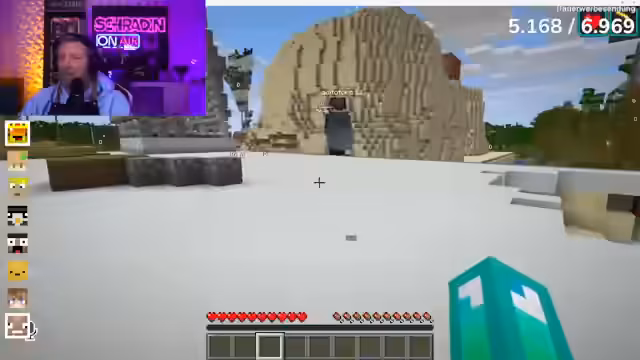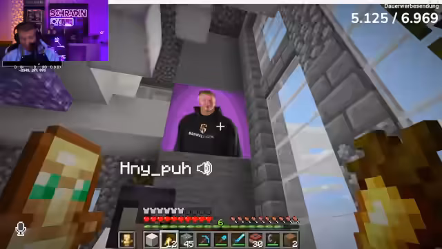08:55:35Schradin erwähnt den Weltendownload, bei dem Nutzer alle erstellten Bauwerke und Ressourcen nutzen und herunterladen können, ohne deren genaue Anzahl zu kennen. Anschließend diskutiert er mit Zabex den Kauf von Diamant-Werkzeugen und Rüstung bei Dorfbewohnern mit Emeralds. Zabex stimmt zu und will die Diamant-Rüstung aktivieren, benötigt aber dafür genügend Kapital und muss dazu zunächst Werkzeug besorgen. Die Anfrage nach einem Dreizack von Zabex verläuft jedoch ergebnislos.