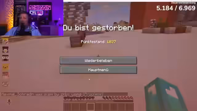 09:52:53Die Situation eskaliert erneut, als Zabex versucht, Schradin zu töten. Schradin ist wütend und beklagt die ständigen Angriffe. Er fragt sich, warum Zabex so stark ist und wer ihn unterstützt. Die anderen Spieler sind besorgt über die angespannte Stimmung und versuchen, die Situation zu beruhigen. Schradin ist entschlossen, sich nicht länger zum Narren halten zu lassen und plant, ins Bootcamp zu gehen, um sich zu verbessern. Er will jeden Tag trainieren und ein ernstzunehmender Gegner werden. Die anderen Spieler sind skeptisch, ob Schradin es schaffen wird, sich zu verbessern, aber er ist entschlossen, sie alle zu überraschen. Er will lernen, wie man Tränke braut und Effektpfeile benutzt, um seine Feinde zu besiegen. Schradin ist bereit, alles zu tun, um sich zu rächen und seine Ehre wiederherzustellen. Er ist entschlossen, die 200 Tode zu erreichen und seine Feinde zu besiegen.