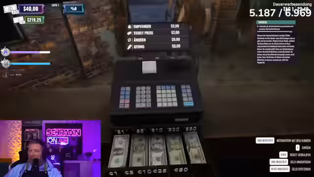 06:27:36Schradin wird am dritten Tag an der Kasse eingearbeitet, obwohl er zuvor gut an der Zapfanlage war. Es wird betont, dass die Aufgaben gewechselt werden, damit jeder alles beherrscht. Die Bedienung der Kasse wird als einfach erklärt: Linksklick auf die Kasse, Geld annehmen, Wechselgeld berechnen lassen und dann mit Leertaste den Kunden einlassen. Bei Null Wechselgeld wird das Geld einfach angenommen und der Kunde eingelassen. Nach der Vorbereitung der Biere – ohne Zitrone, mit einfacher und doppelter Zitrone – wird die Jukebox angeschaltet und der Club offiziell eröffnet. Die erste Bestellung ist ein „schlechtes Bier“, welches schnell serviert wird. Schradin nimmt zunächst 14 Dollar Eintritt, was als zu hoch kritisiert wird, da der Preis zwischen 7 und 8 Dollar liegen sollte, um Kunden nicht abzuschrecken. Es kommt zu ersten Problemen, als Schradin von einem Kunden verprügelt wird, was als schlecht für den Ruf des Clubs angesehen wird. Trotzdem wird weitergemacht, und es werden weitere Bestellungen wie ein Bier mit Doppelzitrone und ein normales Bier angenommen.