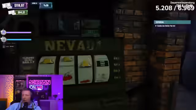 06:39:27Nach einem turbulenten Abend wird Feierabend gemacht, und die Streamer überlegen, wie sie den Club renovieren und upgraden können, da sie viel Geld eingenommen haben. Es wird festgestellt, dass das Förderband-Upgrade blockiert ist, und es stellt sich heraus, dass ein verbackener Becher in der Theke das Problem ist. Nach dem Entfernen der störenden Gegenstände kann das Upgrade endlich aktiviert werden, was die Kapazität für eingehende Kunden erhöht. Es wird beschlossen, den Laden zu schließen und am nächsten Tag mit den neuen Upgrades und einer besseren Vorbereitung zu starten. Neue Bestellungen für Bier und Soda werden getätigt, und es wird überlegt, wie man Cocktails wie Gin zubereitet, da ein Shaker fehlt. Ein Spielautomat wird freigeschaltet und aufgestellt, der jedoch von den Streamern selbst genutzt wird, um zu spielen und Geld zu gewinnen oder zu verlieren. Monte verliert zunächst 100 Dollar, gewinnt dann aber wieder. Es wird diskutiert, ob man eine Kassiererin und einen Hausmeister einstellen sollte, um den Betrieb zu verbessern und Schradin zu entlasten.