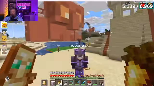 03:11:41Der Streamer sprengt die 'Rosette' – einen rosa Baustein – von Zabex' Sphinx, nachdem er sich von diesem verraten fühlt. Zabex ist wütend und fordert den Streamer auf, den Schaden zu beheben. Der Streamer beteuert, dass er es nicht war, und schiebt die Schuld auf einen Creeper. Die anderen Spieler sind fassungslos über die Zerstörung und die ständigen Konflikte. Der Streamer versucht, die Situation zu entschärfen, indem er vorschlägt, Frieden zu schließen, aber die Spannungen bleiben bestehen. Es kommt zu weiteren Beschuldigungen und Drohungen, und die Situation eskaliert erneut. Der Streamer wird von den anderen angegriffen und versucht, sich zu verteidigen. Er fühlt sich ungerecht behandelt und will Rache für all das, was ihm angetan wurde.