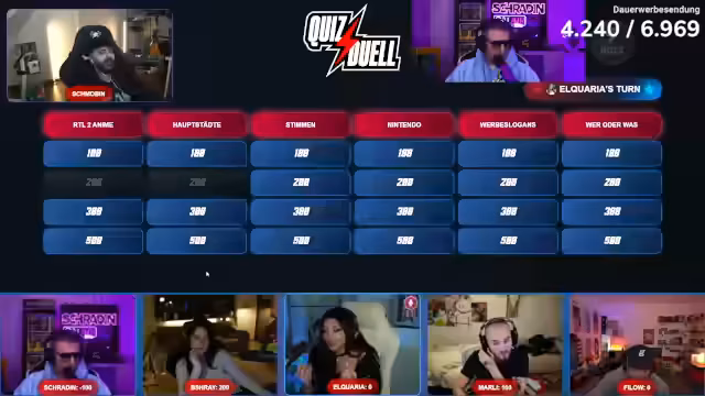 03:35:48Der Stream beginnt mit einer Quizrunde, bei der der Streamer und seine Mitspieler Fragen aus verschiedenen Kategorien beantworten. Dabei kommt es mehrfach zu Missverständnissen und falschen Antworten. Beispielsweise wird nach einer Showmoderatorin gesucht, und der Streamer nennt den Namen 'Proritschki', der jedoch nicht korrekt ist. Auch bei einer Frage zu einem Pokémon-Charakter, dem 'Scaraborn', gibt es Unstimmigkeiten, da der Streamer fast den richtigen Begriff 'Scarabee' nennt. Die Runde ist von leichten technischen Schwierigkeiten und humorvollen Anekdoten geprägt, bei denen die Teilnehmer oft über ihre Tippfeulen schmunzeln. Die Atmosphäre bleibt dabei trotz der kleineren Rückschläge locker und unterhaltsam.