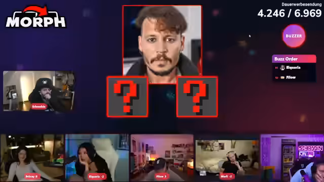 04:44:32Das Format setzt sich fort mit Bildern von Johnny Depp und Nic, Inscope und anderen. Fehlende Buzzernutzer verursachen Verwirrung. Diskussionen über KI-Mischungen wie "militante Veganerin" und Trump folgen. Das Team debattiert über Antwortstrategien, während Zeitdruck wächst. Am Ende wird das Quiz nach dem letzten Bild beendet, ohne dass ein Sieger klar wird, da technische Störungen die Antworten beeinflussten.