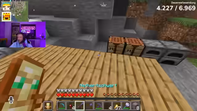 00:11:50Heute wird das letzte Mal FitnaCraft gespielt. Gemeinsam mit G-Time soll ein Haus im Berg gebaut und der Nether erkundet werden, um vollständige Nether-Rüstung und -Schwerte zu craften. Ziel ist auch die Vorbereitung auf das große Finale gegen den Endertrachen um 18 Uhr. Zusätzlich ist geplant, Montes Haus durch Untergrabung und 30-40 TNT zu sprengen, da der Streamer sich vom wiederholten Aufbau lösen möchte.
