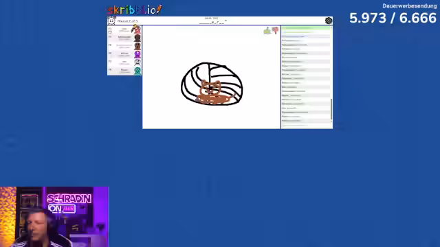 06:34:31Als nächstes wird das Zeichenspiel Scribble gespielt. Die Teilnehmer versuchen, Wörter durch Zeichnungen zu erraten. Die Zeichnungen sind oft unfallhaft und führen zu Verwirrung und Humor. Einige Spieler erkennen die Wörter sofort, während andere völlig danebenliegen. Das Spiel ist geprägt von kreativen Versuchen und teils absurden Interpretationen der Zeichnungen.