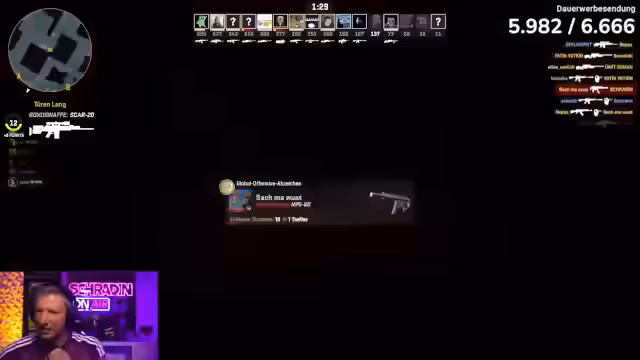 09:02:27Die Teilnehmer wechseln in einen Deathmatch-Modus in Counter-Strike, in dem es darum geht, möglichst viele Kills zu erzielen. Die Teamstrategie wird angepasst, wobei einer vorgeht und der andere deckt. Die Streamer versuchen, eine passende Lobby zu finden und klären die Regeln des neuen Spielmodus. Die Stimmung ist aufgeregt und konzentriert.