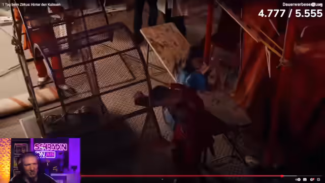 03:33:28Der Streamer und sein Team besuchen den Zirkus Roncalli und erhalten einen exklusiven Blick hinter die Kulissen. Sie werden vom technischen Leiter Felix begrüßt und durch die Vorhalle, den Merchandising-Bereich und das Hauptzelt geführt, das Platz für 1320 Zuschauer hat. Die Reportage zeigt, wie die Orchester-Musiker die Artisten unterstützen und der Oberrequisiteur Peter für die Sicherheit der Artisten mit Longen sorgt. Der Streamer wird selbst von einem Clown in die Manege gezogen.