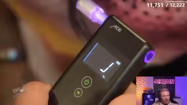 05:59:15Der Konsum von Alkohol wird intensiv fortgesetzt. Bushido ohne Bart wird thematisiert und Spender werden für ihre Unterstützungen gedankt. Eine Blutalkoholkontrolle bei Jasmin ergibt einen Wert von 2 Promille, was zur Warnung führt, das Gaspedal herunterzudrehen. Trotz des hohen Werts ist Jasmin in guter Verfassung und fühlt sich bereit für ihr Blind Date.