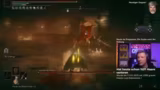 03:38:43Der Streamer reist in das Gebiet Haus Vulkan. Hier stoßen sie auf eine Nebenquest-Figur, die als alternative Quest beschrieben wird, für den aktuellen Durchlauf aber nicht relevant ist. Trotzdem wird der NPC kurz erwähnt. Anschließend wird der Fokus auf eine wichtige Questlinie mit der Dame in der Tafelfeste gelegt. Diese schlingt einen Kopf und ihr Beschützer, der Boss Rykard Fürst der Blasphemie, wird aktiviert.