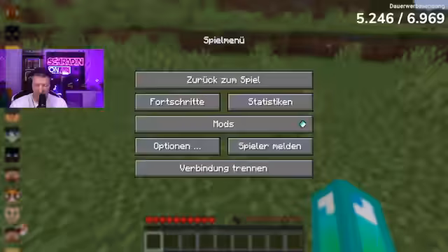 In der Gaming-Session wird zunächst TNT-Mining in einer spezifischen Location durchgeführt. Der Spieler setzt sich mit Mod-Interaktionen auseinander, wobei Systemkommandos und Items wie der Pferdespawner zum Einsatz kommen. Parallel laufen deutsche Voice-Chat-Gespräche über das HDD-System und Spielstrategien.