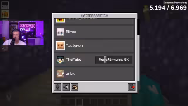 01:57:25Der Konflikt mit Danny und Zabex eskaliert, nachdem Zabex Danny auf den Streamer hetzte. Danny tötete den Streamer und nahm ihm alle Items weg, darunter eine Diamant-Axt. Als direkte Reaktion kündigt der Streamer TNT-Sprengungen an, obwohl er solche Aktionen eigentlich am zweiten Tag vermeiden wollte. Dieser Vorfall löst einen erneuten FitnaCraft-Konflikt aus, bei dem der Streamer betont, unschuldig zu sein und nur auf Provokationen zu reagieren.