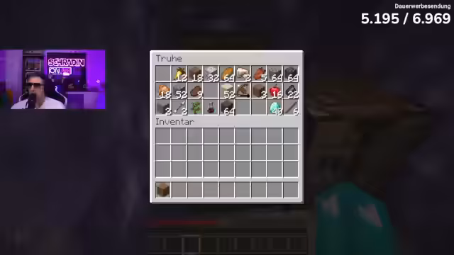 03:32:51Der Streamer berichtet von einem Einbruch in sein Gebiet, bei dem ein Spielerteam seine gesamte Ausrüstung gestohlen hat. Er verlor 80 Diamanten sowie drei komplette Rüstungen inklusive Waffen und Werkzeugen. Dieser Verlust kommt einem 17-stündigen Farming-Aufwand gleich und zwingt ihn, komplett neu bei Null anzufangen. Die Tat wird als unprovoziert und ungerecht beschrieben, da keine vorherigen Konflikte bestanden haben. Der Frust über den Zeitverlust und die Schutzlosigkeit wird deutlich.