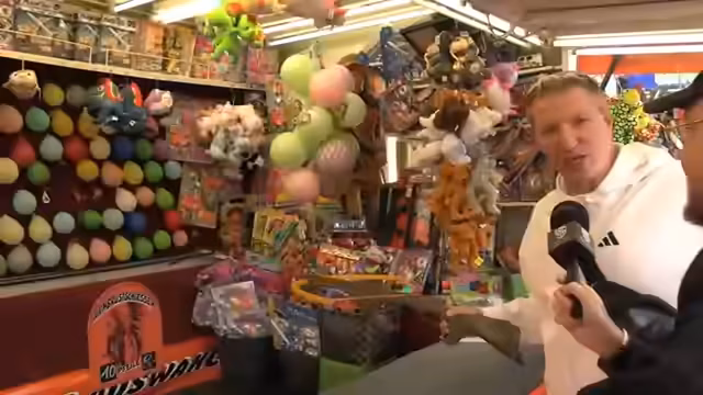 00:24:07Auf der Suche nach Essen machen sie an einem Stand mit Fischbrötchen halt. Es werden zwei große Knoblauchgurken bestellt und ein Wettbewen ausgetragen, ob einer von beiden eine besonders scharfe Gurke essen wird. Nach einigen Bedingungen und einem kleinen Hinweis auf Fett-Shaming bezüglich des Karussells entscheiden sie sich, stattdessen Dosenwerfen zu spielen. Der Streamer, aus dem Dart-Sport kommend, hat hier einen Vorteil, aber der Verlierer muss trotzdem zahlen. Die Atmosphere ist entspannt und freundschaftlich, auch wenn die Wettkämpfe teilweise hitzig verlaufen.