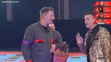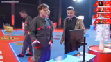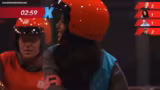 02:37:57Eine physische Herausforderung folgt mit einem Rocket-League-artigen Spiel in Go-Karts. Die Teams rot und blau spielen rückwärts, wobei es Verbote gibt, in den Strafraum zu fahren. Die Regeln sind klar: man muss passen, bevor man schießt, und das Fahren mit den Füßen ist verboten und führt zu einem Strafwurf. Ein Tor und das Zurückstellen des Balls sind der Spielablauf.