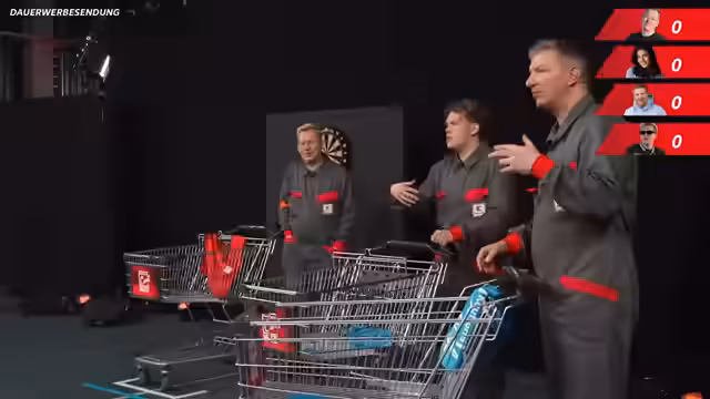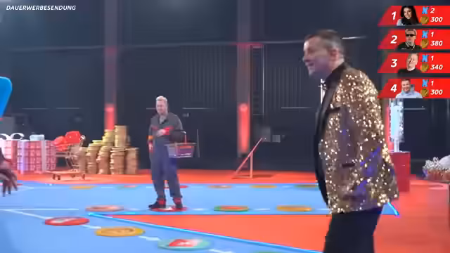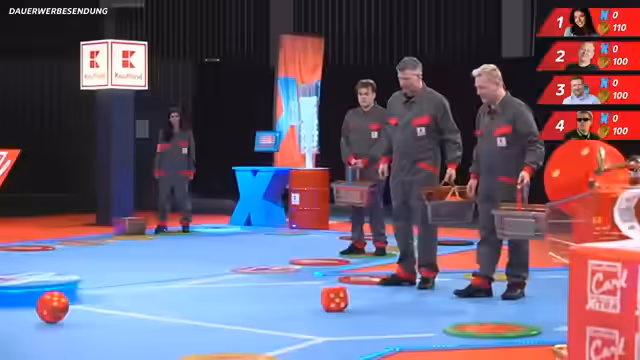 04:07:44Nach einer kurzen Pause wird das Format des Spiels gewechselt. Die Teilnehmer würfeln um Positionen und Treuepunkte auf einem virtuellen Spielfeld. Es können Items gekauft werden, die den Würfelwert verdoppeln oder Punkte von anderen Spielern stehlen. Nach einigen spannenden Würfen und einem unglücklichen Duell, bei dem ein Teilnehmer zurückgesetzt wird, beginnt ein neues Spiel: Ein Einkaufswagen-Curling. Die Teilnehmer wählen ihre Wagen aus und starten einen Teamwettbewerb, bei dem es gilt, die Wagen so schieben zu lassen, dass sie am nächsten bei einem Zielpunkt landen.