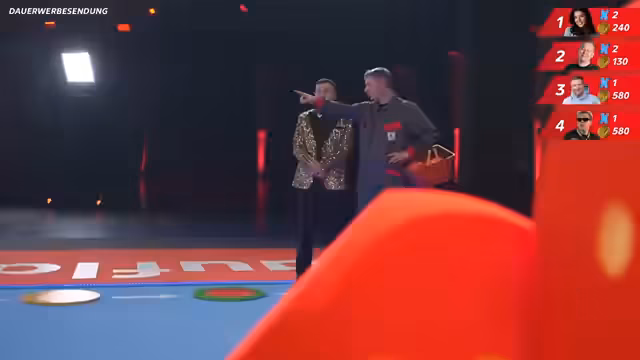 05:47:53Nach dem Hauptspiel folgt ein neues, actionreiches Minispiel: das Bottle Flip. Jeder Teilnehmer erhält eine Flasche und muss versuchen, sie auf den Tisch zu werfen, damit sie stabil stehen bleibt. Das Spiel ist bekannt für seine Schwierigkeit und erzeugt viele Augenblicke des Scheiterns und Triumphs. Teilnehmer sammeln Punkte, indem sie Erfolg haben, und müssen im Notfall Flaschen wechseln, da das Wasser zu unruhig wird. Die Spannung ist hoch, da das letzte Minispiel ist und ein wertvolles X als Preis ausgelobt ist. Der Gewinner wird derjenige sein, der die meisten erfolgreichen Würfe schafft.