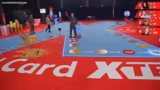 02:41:46Um das Spiel fortzusetzen, werden neue Regeln eingeführt. Es wird eine Ersatzregel namens 'Fred Feuerstein' eingeführt, die es erlaubt, die Füße zu benutzen, wenn die Technik erneut versagt. Zusätzlich wird eine neue Wurfregel etabliert: Würfe sind nur aus der eigenen Hälfte erlaubt. Die Uhr läuft bei drei Minuten Restzeit weiter und das Spiel wird mit dem gleichen Stand aufgenommen.