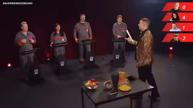 01:49:12Eine neue Runde des Spiels beginnt, diesmal mit einer Wissenskomponente. Den Spielern wird das Gewicht einer Melone vorgelegt, ohne Teller, und sie müssen deren Gewicht in Gramm schätzen. Nachdem die Ergebnisse vorgelegt werden, wird das tatsächliche Gewicht enthüllt. Anschließend folgt eine zweite Schätzfrage, bei der es um die Anzahl von Blaubeeren in einem Stiefel geht.