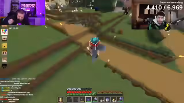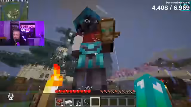 04:08:24Im Minecraft-Teil des Streams kommt es zu intensiven Kämpfen zwischen Spielern wie Kato, Reapers und Vasili. Dabei wird diskutiert, ob Enchantments aktiviert sind oder nicht. Schradin äußert Frust über als unfair empfundene Spielmechaniken, insbesondere als er im Kampf unterliegt. Die Community debattiert über Balance-Fragen, während parallel der Among-Us-Start um 21 Uhr angekündigt wird, was den nahenden Wechsel des Spielmodus markiert.