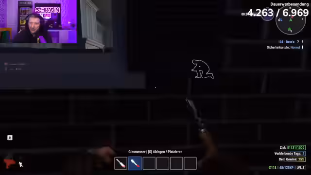 00:46:24Zusammen mit Zabex wird der Einbruch-Simulator gestartet, bei dem es darum geht, Häuser auszurauben und Aufgaben zu erfüllen. Mit begrenztem Werkzeug versuchen die beiden, durch geschicktes Vorgehen Geld zu verdienen. Trotz einiger Rückschläge und missglückter Einbruchsversuche arbeiten sie strategisch weiter, um das gesteckte Ziel zu erreichen.