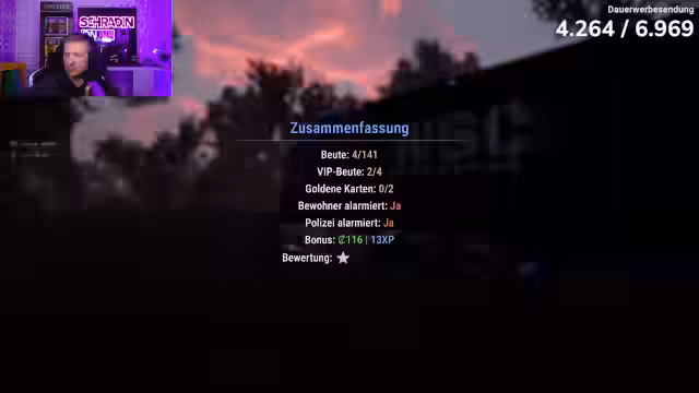 02:05:53Im letzten Anlauf räumen sie das Bonzenhaus komplett leer, klauen unter anderem einen High-End-PC und ein weiteres Klavier. Trotz einiger Patzer mit aufmerksamen Bewohnern und der Polizei gelingt die Flucht. Zum Ende hin erwähnt Schradin, dass dies ihr letzter FitnaCraft-Stream sei, wobei sie betonen, durch strategisches Vorgehen in diesem Haus besonders erfolgreich gewesen zu sein.