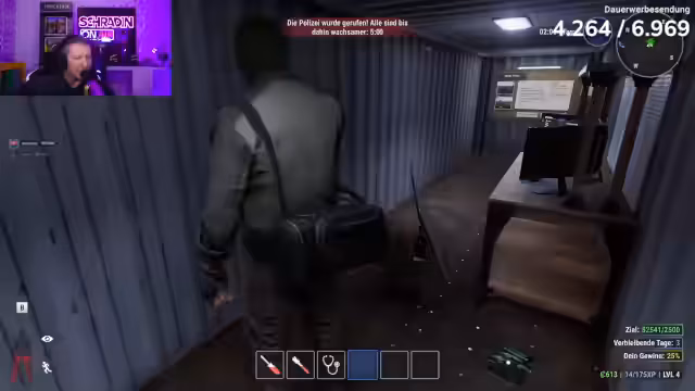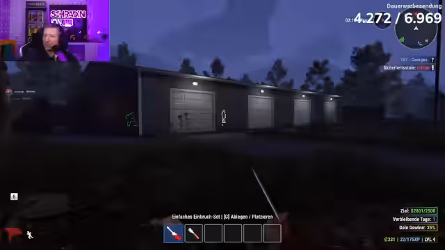 02:31:28Die Spieler versuchen, einen Tresor in einer Garage zu knacken, wobei sie mit falschen Codes aus dem Chat konfrontiert werden. Nach mehreren gescheiterten Versuchen und der Ablenkung durch einen NPC stellen sie fest, dass der Code täglich wechselt und suchen verzweifelt nach einem Zettel mit dem richtigen Code. Trotz der Hindernisse gelingt es ihnen, weitere Beute zu machen.