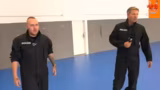 03:46:40Die Polizisten führen eine Festnahme durch, bei der die nicht kooperative Person sich passiv versperrt, indem sie die Arme unter den Körper zieht. Sie demonstrieren den korrekten Griff, um den Arm aus dieser Position zu befreien, und erklären die technische Vorgehensweise. Die Vorteile des Einsatzstocks als Hebelwerkzeug werden gegenüber einem reinen Schlagstock betont. Eine zweite Person wird benötigt, um Festgenommene am Aufstehen zu hindern und die Sicherheit der Beamten zu gewährleisten.