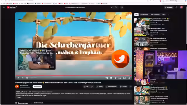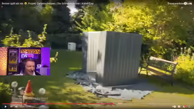 01:34:18Der Streamer diskutiert über den Bau eines Pools in einem Schrebergarten und die damit verbundenen Herausforderungen. Es werden verschiedene Aspekte des Gartenbaus und der Gestaltung besprochen, sowie humorvolle Situationen während des Bauvorhabens geschildert. Der Streamer zeigt verschiedene Videos von Schrebergärten und Kommentiert diese unterhaltsam für seine Community.