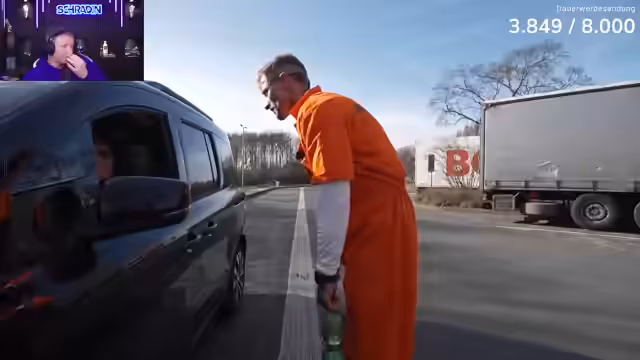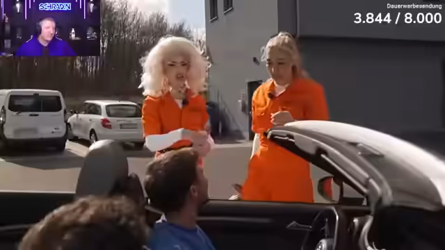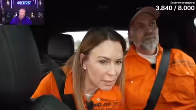03:35:04Das Team um Helen kann mit geileren Typen in einem Viersitzer-Cabrio mitfahren, was eine logistische Herausforderung für den Kameramann darstellt. Der Streamer fragt sich, ob die Fahrerin angeschnallt ist oder den Gurten nur steckt, damit das Auto nicht piepst. Sie nutzen die Mitfahrgelegenheit, um sich in Richtung Dortmund treiben zu lassen und geben dabei einen gefälschten Standort durch, um die Jäger zu täuschen. Dies wirft Fragen zu den Spielregeln und der Distanz zu den Jägern auf.