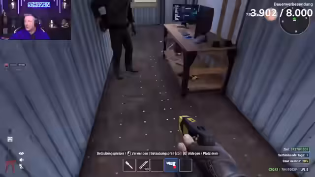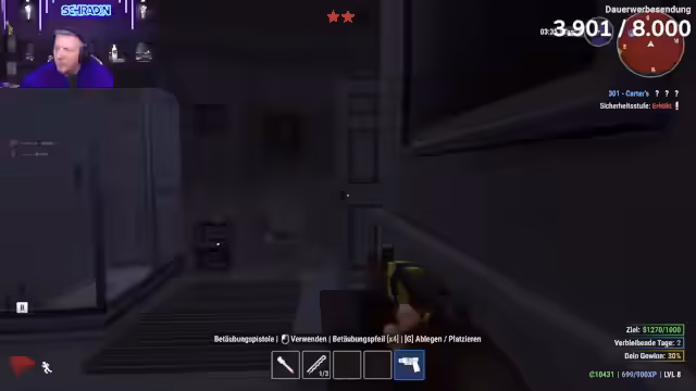 05:56:01Der Stream beginnt mit einer erneuten Runde im Crime Simulator, in der Zarbex und der Streamer als Team agieren. Sie planen einen Einbruch in ein Farmhaus und wollen die Bewohner betäuben, um sie gefangen zu nehmen. Die anfängliche Aktion verläuft jedoch unglücklich, da ein Bewohner die Polizei ruft, was zu einem Chaos und der Flucht aus dem Haus führt. Trotz dieses Misserfolgs bleibt das Ziel, die Immobilare zu plündern, und das Team sammelt die erbeuteten Gegenstände wie eine Lederbrieftasche und einen Projektor.
