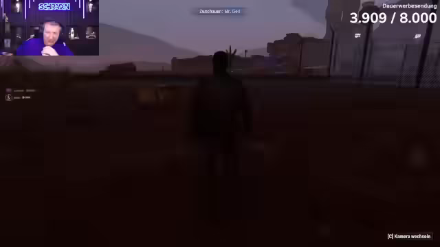05:47:34Die beiden wagen sich zur Scheune auf dem Gelände. Auch hier müssen sie vorgehen: Bewusstlose fesseln, die Halle ausräumen. Streamer wird jedoch während der Durchführung gesehen, was sofort die alarmierte Polizei auf den Plan ruft. Es kommt zu einer hektischen Flucht und Verstecksituation. Streamer und Zabex müssen den Raub abbrechen, werden aber nicht direkt von der Polizei entdeckt, was Glück und geschickte Taktik erforderte.