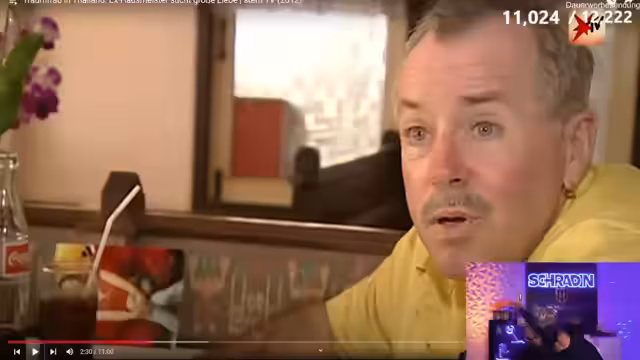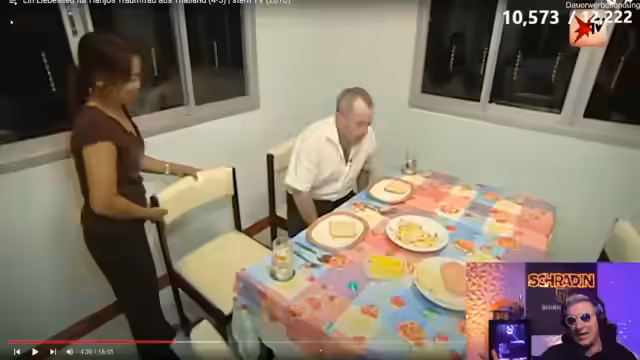 09:36:49Nach Deutschland zeigt der Streamer eine Rückblende auf seine Reality-Show Traumfrau in Thailand aus dem Jahr 2012. Er stellt den 60-jährigen Hausmeister Hanjo vor, der in Thailand seine Traumfrau Nomm sucht. Nach anfänglichen Schwierigkeiten und kulturellen Unterschieden beschließen beide, es zu versuchen und zusammenzuziehen. Die Beziehung entwickelt sich positiv, besonders als Hanjo den Haushalt übernimmt, damit sich Nom entspannen kann.