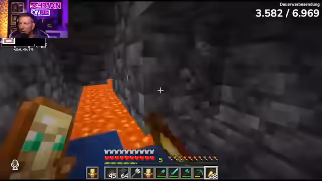 01:12:25In der Riesenhöhle wird ein effektiver Arbeitsablauf etabliert. Einer der Streamer kümmert sich um das Freimachen der Diamantenblöcke während der andere diese abbaut. Es werden strategische Hinweise gegeben, wie man mit Zombies, Lava und Creeper umgehen muss und warum es wichtig ist, die Rüstung und den Gesundheitszustand im Auge zu behalten. Trotz des großen Erfolgs bei der Diamantsuche gibt es immer wieder Frustration aufgrund der langsamen Lernkurve des einen Streamers, der Schwierigkeiten mit grundlegenden Minecraft-Funktionen hat.