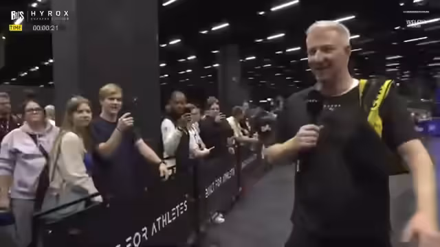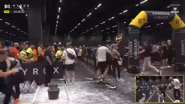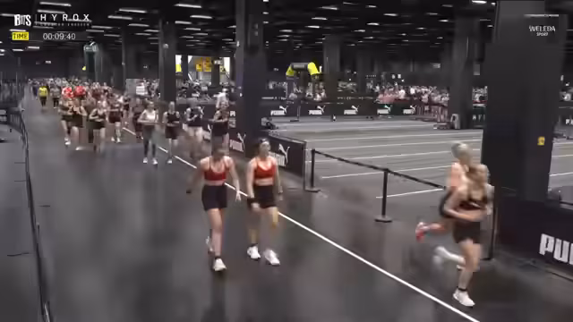03:08:04Die Teilnehmer durchlaufen einen anspruchsvollen HYROX-Parcours mit acht verschiedenen Kraftdisziplinen, die mit Lauferien von 1000 Metern kombiniert sind. Die Atmosphäre ist hochspannend, da die Athleten mental und physisch gefordert sind und an ihre Grenzen gehen. Beobachtet wird, wie die Teilnehmer sich durch verschiedene Stationen wie Rudern und Gewichtstraining kämpfen, wobei Motivation und Ausdauer im Vordergrund stehen.