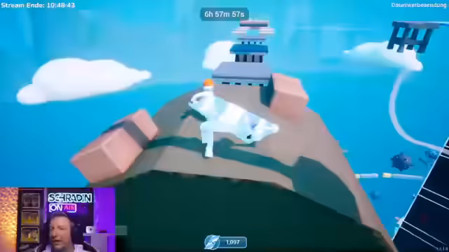 11:59:28Nachdem die erste schwierige Passage überwunden ist, erreichen die Streamer eine noch komplexere Etappe des Spiels. Sie müssen präzise auf schmalen Ballonen balancieren und zeitweise springen, um Hindernisse zu vermeiden. Nach fast einer Stunde an dieser Stelle und unzähligen gescheiterten Versuchen steigt die Frustration bei beiden Spielern deutlich an.