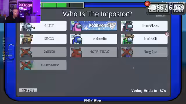01:56:52Ein weiterer Kill ereignet sich, und diesmal wird Rose in Communication getötet. Danny wird als Täter identifiziert, da sein Charakter in der Nähe gesehen wurde. Die Spieler diskutieren die Glaubwürdigkeit der Zeugenaussagen und versuchen, die Laufwege der Verdächtigen zu rekonstruieren. Schradin wird erneut verdächtigt, obwohl er beteuert, nichts getan zu haben. Die Gruppe beschließt, El Quaco zu wählen, basierend auf der Aussage, er sei beim Kill gesehen worden. Schradin äußert seinen Frust über die ständigen Anschuldigungen gegen ihn und die Schwierigkeit, als Imposter zu agieren, wenn die Crew so gut zusammenarbeitet. Die Runde endet mit einer Niederlage für die Imposter.