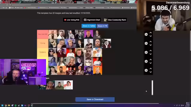 04:37:45Der Streamer reagiert auf ein Video von 'Satter Hugo', dessen schnelle Bildwechsel und unklare Storyline ihn irritieren. Anschließend beginnt er mit einer humorvollen Bewertung der FitnaCraft-Teilnehmer, indem er sie in Kategorien wie 'harmlos', 'schlimm' und 'Firma' (sehr schlimm) einteilt. Abo und Breitenberg erhalten eine eigene Kategorie als die 'Schlimmsten'. Er diskutiert mit dem Chat über die potenziellen 'Zerstörer' im Spiel, wie Fabo und Kroko, und spekuliert über das Verhalten von Neulingen wie Gigant. Die Liste ist noch nicht final, und es wird eine Abstimmung über die endgültige Einteilung angekündigt. Die Vorfreude auf das am 7. Dezember startende FitnaCraft-Event ist groß, und es wird erwartet, dass es ein explosives und unterhaltsames Ereignis wird.