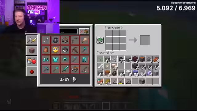 05:51:49Auf der Suche nach Eisen stößt man auf eine Höhle und entdeckt erfolgreich Eisen. Der nächste Schritt ist das Schmelzen des Roheisens in einem Ofen. Es wird erklärt, dass Kohle ein besserer Brennstoff ist als Holzbretter, falls verfügbar. Der Spieler wird angewiesen, ein Schild herzustellen, das aus Holz und einem Eisenbarren gefertigt wird. Das Schild wird in die linke Hand gelegt, um es zum Blocken von Angriffen zu nutzen. Die richtige Technik des Blockens und Gegenangreifens wird geübt, indem man wartet, bis der Angriffsbalken des Schwertes vollständig aufgeladen ist. Anschließend wird die Notwendigkeit einer Eisenspitzhacke betont, um tiefer in die Höhle vorzudringen und Diamanten zu finden. Es wird geraten, zuerst die Steinspitzhacken zu verbrauchen, um Ressourcen effizient zu managen. Die Diskussion über die Teilnahme an FitnaCraft und die damit verbundenen Herausforderungen, wie das Gejagtwerden als schwächstes Glied, wird ebenfalls angeschnitten.