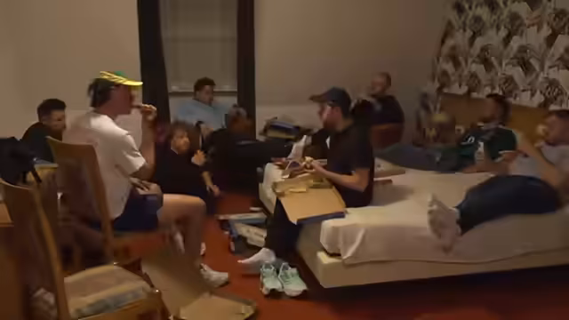 08:20:58Es wird beschlossen, direkt loszufahren, wenn Schradin ankommt, und es wird als Vorteil gesehen, dass er die Gruppe bereit vorfindet. Nach dem Essen sollen alle in ihre Zimmer gehen, duschen und schlafen. Es wird ein Problem bezüglich Schradins erster 100-Kilometer-Fahrt im Regen angesprochen. Es wird befürchtet, dass es schwierig wird, wenn Schradin das erste Mal auf das Fahrrad steigt und direkt 102 Kilometer im Regen mit Gewitter zurücklegen muss. Es wird betont, dass die Gruppe nur so stark ist wie der schwächste Schradin. Es wird spekuliert, dass es eine lange Nacht werden könnte. Die Pizza ist da, aber es gibt nur drei. Es wird über die Bestellung diskutiert und darüber, wer was bestellt hat. Die Pizza wird als sehr gut bewertet, besonders in Kombination mit dem Knoblauchdip. Es wird überlegt, wann Schradin morgen abgeholt werden kann. Es wird der Eindruck vermittelt, dass es eine sportliche und eine 'Trantik'-Seite gibt. Einige sind immer früh wach und müssen einen Puffer einplanen, da sie wahrscheinlich nicht vor halb 12 losfahren werden. Es wird vorgeschlagen, den Wecker für Max Schradin auf 9.30 Uhr zu stellen. Es wird betont, dass die 100 Kilometer geschafft werden müssen, egal wann Schradin ankommt, und dass ein Start um 13 Uhr nicht in Frage kommt. Es wird vereinbart, spätestens um 11 Uhr loszufahren, eigentlich um 10 Uhr. Der Anruf für die Pizza kommt. Es wird über die getrackten Daten des Tages gesprochen, wie lange die längste Fahrt war. Es wird betont, dass alle Statistiken vorhanden sind.