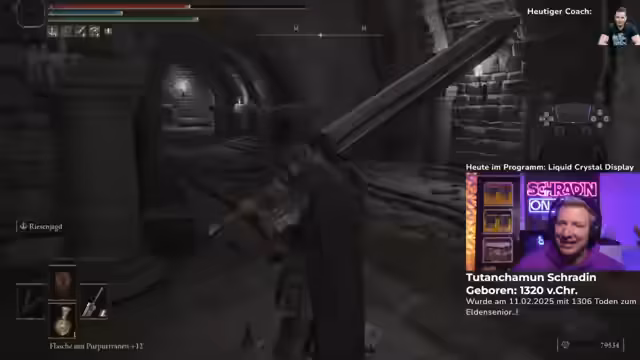 04:23:34In diesem Abschnitt des Elden Ring-Livestreams konzentriert sich Schradin darauf, Max durch einen anspruchsvollen Bosskampf zu führen. Schradin gibt detaillierte Anweisungen zu Taktiken wie Ausweichen, Heilen und Mana-Management. Er betont die Bedeutung, hinter den Boss zu rollen, um Angriffen auszuweichen und kritische Treffer zu landen. Es wird deutlich, dass der Bosskampf eine Herausforderung darstellt, da Max Fehler macht und Schradin ihn ermutigt, ruhig zu bleiben und aus seinen Fehlern zu lernen. Es wird diskutiert, dass der Boss sich durch bestimmte Aktionen heilt, was den Kampf zusätzlich erschwert. Schradin lobt Max' Fortschritte und seine Fähigkeit, sich an die Angriffsmuster des Bosses anzupassen. Trotz einiger Rückschläge und Frustrationen bleibt Schradin unterstützend und gibt kontinuierlich Tipps, um Max zum Sieg zu führen. Die Emotionen reichen von Anspannung und Aufregung bis hin zu Erleichterung und Freude über gelungene Aktionen. Der Abschnitt endet mit der Vorbereitung auf die nächste Phase des Kampfes, wobei Schradin Max' Strategie basierend auf den bisherigen Erfahrungen anpasst.