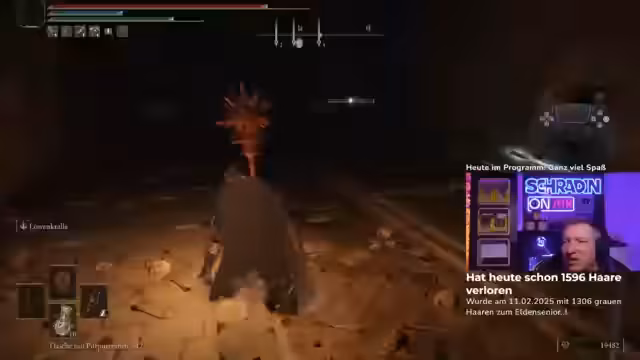 01:54:05Schradin entdeckt eine neue Strategie im Kampf, indem er Mana-Tränke und blaue Getränke während des Aufstiegs des Gegners einsetzt, was ihm erlaubt, seinen Final-Schlag zu setzen. Er ist begeistert, diese Taktik selbst herausgefunden zu haben, obwohl es ihn ärgert, dass es länger dauert als bei jüngeren Spielern. Trotzdem ist er frustriert über den Kampf und äußert seinen Ärger. Er kommt in eine gute Position, verliert diese aber durch einen unachtsamen Moment, was zu Selbstvorwürfen führt. Der Chat versucht ihn aufzubauen, während er sich über seine Spielweise ärgert. Er verteidigt seine Herangehensweise an das Spiel, indem er erklärt, dass er Elden Ring als Gelegenheitsspieler genießt und sich nicht mit den optimierten Strategien jüngerer, erfahrenerer Spieler messen möchte. Er vergleicht seine Situation mit einem Ü50-Team, das gegen einen Bundesligisten spielt, wobei die Tore für das ältere Team mehr zählen müssten, um eine Chance zu haben.