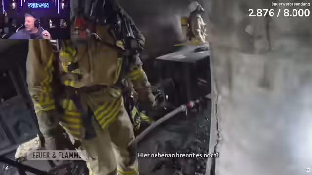 05:12:10Der Fokus liegt auf den extremen Gefahren für die Einsatzkräfte. Die Hitze ist so intensiv, dass selbst die feuerfeste Schutzkleidung kaum Schutz bietet und sich verbrüht. Der Streamer beschreibt den mentalen Kampf, in dem man trotz der Gefahr handeln muss, und betont die entscheidende Rolle erfahrenener Kollegen. Er schildert das Gefühl der Ohnmacht, wenn die Wasserversorgung stockt, und die Erleichterung, als endlich Löschdruck vorhanden ist und sich das Feuer eindämmen lässt.