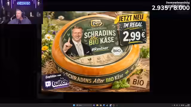 06:36:10Es wird ein Logo-Design-Wettbewerb für die neue Käsemarke 'alter Schradin' initiiert. Die Gewinnerin bzw. der Gewinner erhält 1500 Euro und das Logo wird für den Vertrieb des Bio-Heumilch-Käses aus dem Allgäu verwendet. Die Anforderungen sind präzise: das Logo muss rund, modern und mit einem Bergpanorama gestaltet sein. Zudem muss der Begriff 'alter Schradin' prominent enthalten sein und der Streamer selbst soll mit einem Tiroler Hut und einem Wanderstock oder Rollator dargestellt werden. Einsendungen können über den Discord-Kanal erfolgen.