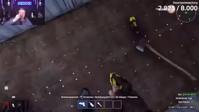 02:22:42Zarbex und Schradin bereiten einen Raubüberfall im Crime Simulator vor. Sie tauschen sich über die Ausrüstung aus, wobei Schradin eine Lötlampe und Zarbex eine Waffe mit sich trägt. Sie legen Wert darauf, dass jeder Schuss sitzt und planen systematisch vorzugehen. Die Stimmung ist geprägt von Euphorie und einer lockeren, teils vulgären Umgangssprache, während sie sich auf den bevorstehenden Einsatz konzentrieren.