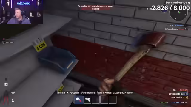 Es wurde eine kriminelle Simulation im Crime Simulator gespielt. Es wurden Einbrüche geplant und durchgeführt, bei denen Werkzeuge wie Axt und Ziehklinge zum Einsatz kamen. Nach der Beute wurde ein riskanter Verkauf inszeniert, um eine teure Waffe zu erwerben. Der Abend wurde anschließend mit einem Wechsel zu Red Dead Redemption 2 fortgesetzt.
