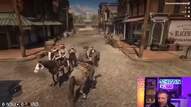 05:15:02Die Situation eskaliert unerwartet: Ein maskiertes Bandenkommando, dem der Streamer anscheinend angehört, entführt tatsächlich Deputy Mr. Bane, den Bruder von Sheriff Cockburn. Dies geschieht, als der Streamer mit Mr. Bane ins Gespräch ist. Nach der Entführung müssen die Kidnapper nun unter Druck einen neuen Plan schmieden. Sie setzen Mr. Bane als Geisel und erpressen Cockburn: Er muss innerhalb von 48 Stunden 1000 Dollar zahlen, sonst soll die Stadt Blackwater brennen. Der Streamer beschließt, seine eigene Rolle in der Entführung zu verschleiern, um den Druck zu erhöhen.