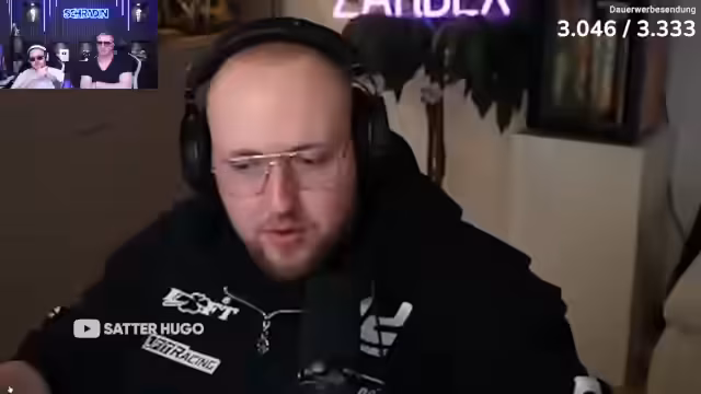 00:15:44Nach einem kleinen Vorfall wird der Plan für den Rest des Streams vorgestellt. Zuerst wird ein "satter Hugo" (eine Getränkemarke) getrunken, dann ein "hungriger Hugo" gegessen. Anschließend sollen die neuen "Most Wanted"-Folgen 3 und 4 reagiert werden. Dabei wird der极度 chaotische und unorganisierte Zustand des Studios kritisiert, von dem einer der Streamer behauptet, es sei so schmutzig, wie es im Stream nie aussehen würde.