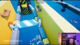 06:56:11Zarbex und Schradin kämpfen mit einer speziellen Spielelement, das synchrones Springen erfordert. Nach mehreren gescheiterten Versuchen, gemeinsam auf gelben Plattformen zu stehen, wird der Chat beleidigt und als unkooperativ beschrieben. Zarbex wird toxisch und gibt Schradin die Schuld an den Misserfolgen, während beide Players die unklaren Anweisungen des Chats und die eigenen Koordinationsprobleme thematisieren.