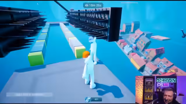 06:13:12Nachdem die Schiebeplattenaufgabe endlich gemeistert wurde, steht das letzte, komplexeste Hindernis an: der Wolkenkratzer. Die Streamer müssen über eine sich bewegende Plattform mit Hindernissen springen, wobei Kooperation und präziser Timing essenziell sind. Die Anstrengung und Nervosität steigt, da jede Fehlbewegung einen Rücksetzpunkt bedeutet.